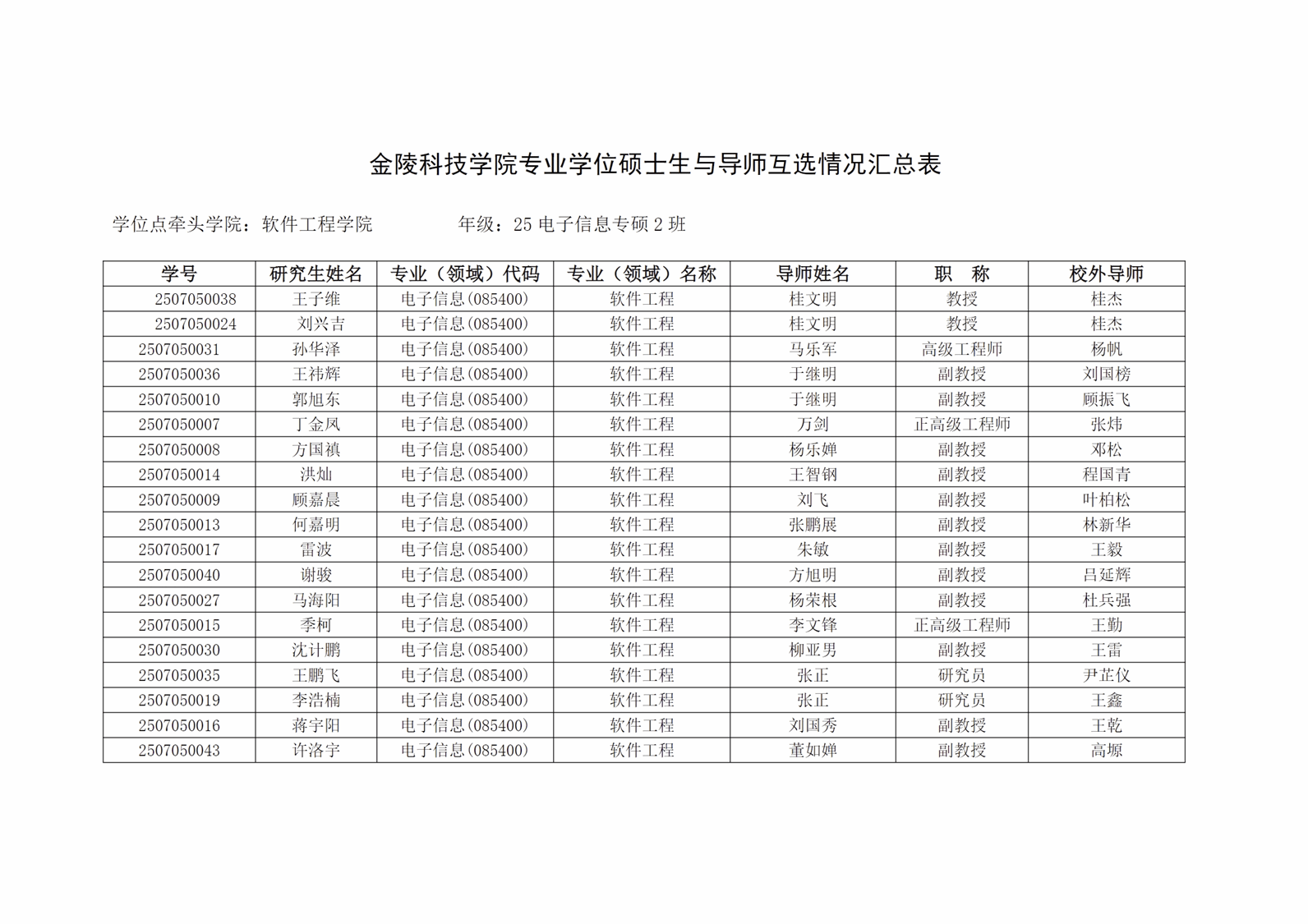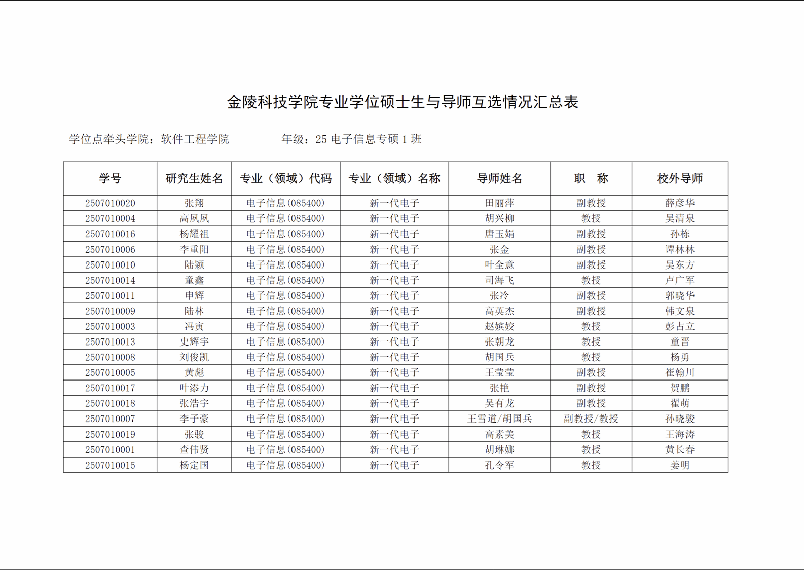 2025年电子信息专业硕士研究生与导师互选情况汇总表如下所示。