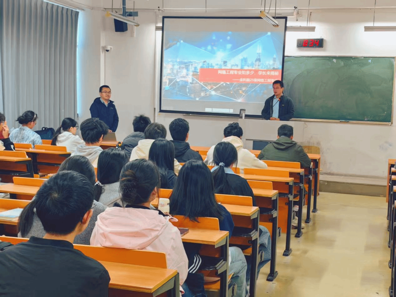 整场讲座内容充实、案例生动,现场学生反响热烈。同学们纷纷表示,通过这次活动,对网络赛事参与、专业学习路径和未来职业方向有了更深入的认识与理解,也对大学生活有了更清晰的规划。本次宣讲不仅搭建了校企交流的桥梁,也为网络工程新生提供了一扇窥见行业现实的窗口,激励他们在技术发展的浪潮中不断前行,成为适应时代需求的网络工程人才。