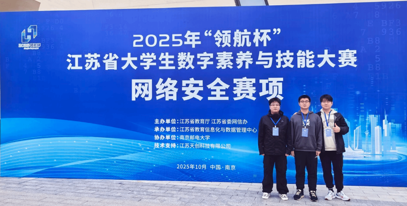 在刚刚落幕的2025年“领航杯”江苏省大学生数字素养与技能大赛网络信息安全赛项决赛中,金陵科技学院网络安全学院“Dozer战队”凭借卓越的技术实力与默契的团队协作,在激烈角逐中脱颖而出,荣获本科组一等奖,继续为学校争得荣誉。这是该战队继2024年首次夺得该赛事一等奖后,再次刷新战绩,持续展现了网络安全领域人才培养的卓越成果。