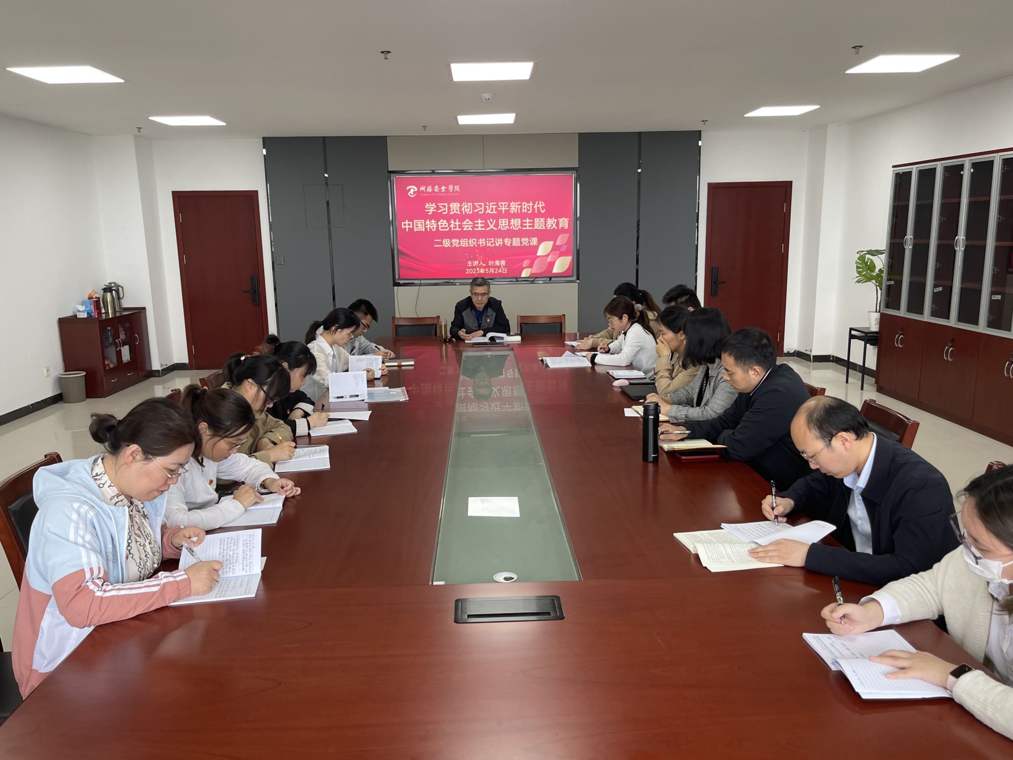2023年5月24日,学院党总支部书记为全体党员讲主题教育专题党课。