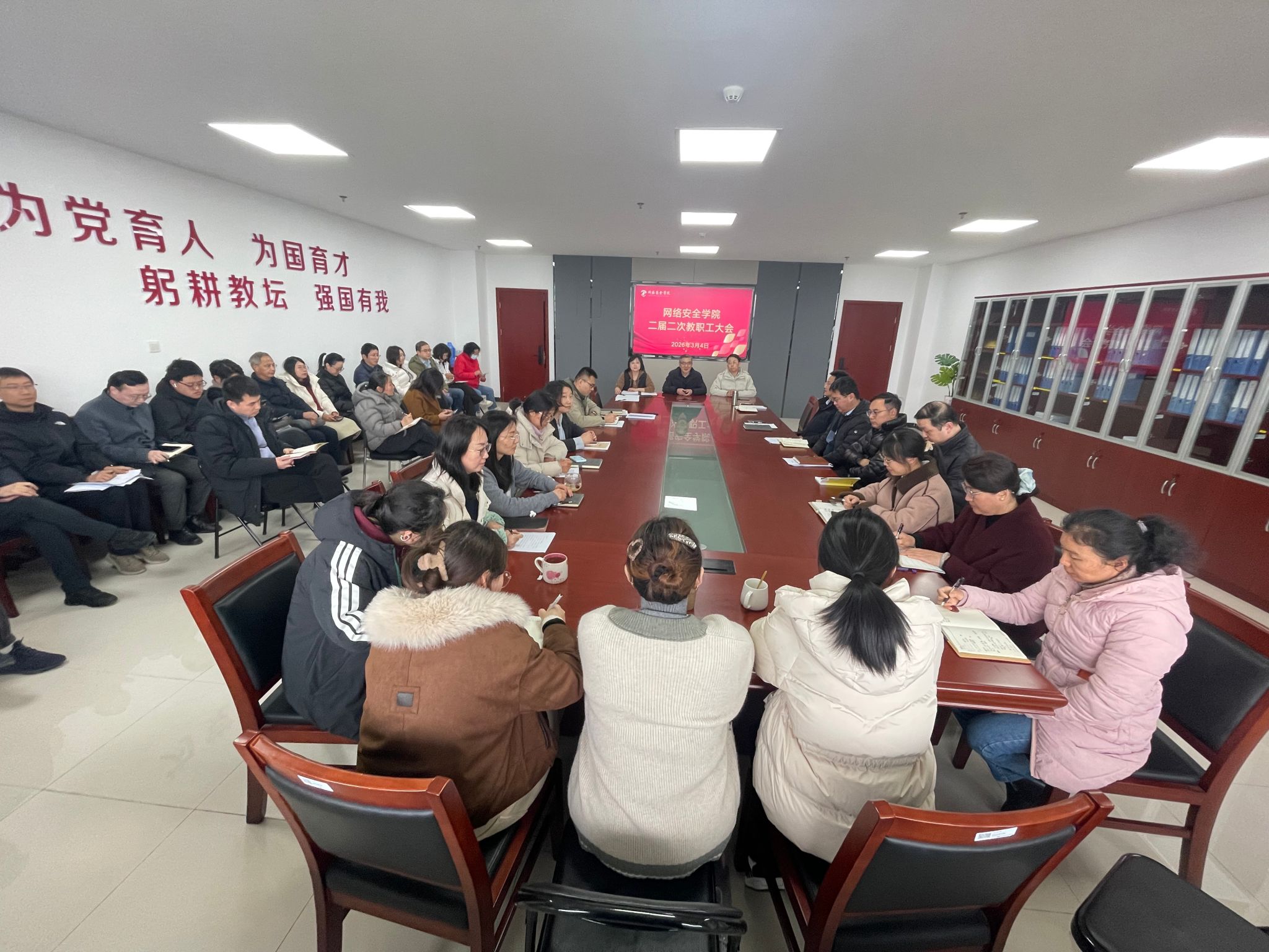 3月4日,网络安全学院在科技楼4号楼1218会议室隆重召开第二届第二次教职工大会。学院党政领导班子成员及全体教职工齐聚一堂,共商学院发展大计,大会由学院分工会主席蔡亚萍主持。